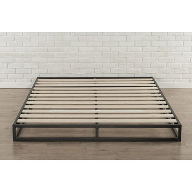 Offer sturdy support for your twin-size high-profile memory foam, spring, or latex mattress with this low-profile platform bed frame made from steel and wooden slats. This black-finished, linear bed frame is at home in modern spaces, and it's suitable for use with or without a box spring. Packed in a narrow box, this bed frame is easy to maneuver upstairs for assembly.