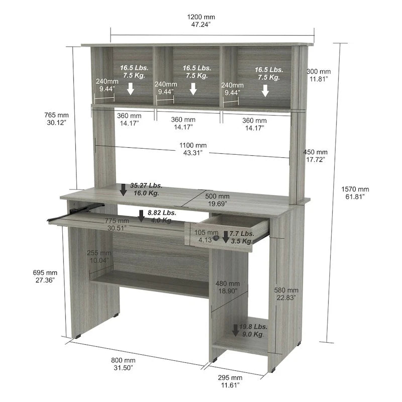 • Slide out keyboard tray with metal railings for your keyboard and mouse