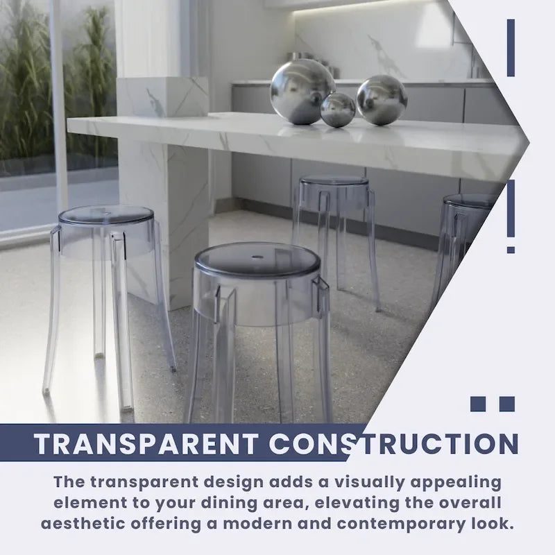 • Whether you have a formal dining room or a casual kitchen, this dining stool's acrylic transparent design adds a touch of elegance and sophistication. This modern plastic stool is the perfect choice for any home or commercial space.