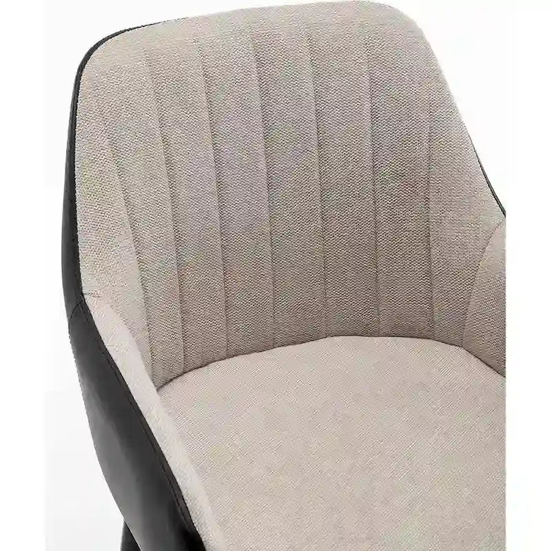 Tall Counter Height Bar Stools, 25, Mid-Back Upholstered Fabric Accent , PU Black Back, Beige Fabric, Set Of 2