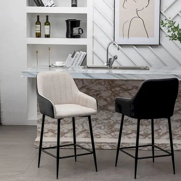 Tall Counter Height Bar Stools, 25, Mid-Back Upholstered Fabric Accent , PU Black Back, Beige Fabric, Set Of 2 Tall Counter Height Bar Stools, 25, Mid-Back Upholstered Fabric Accent , PU Black Back, Beige Fabric, Set Of 2