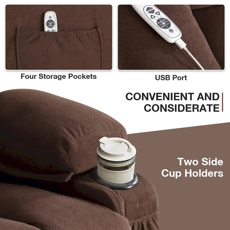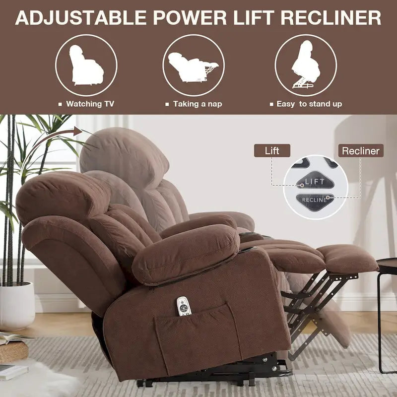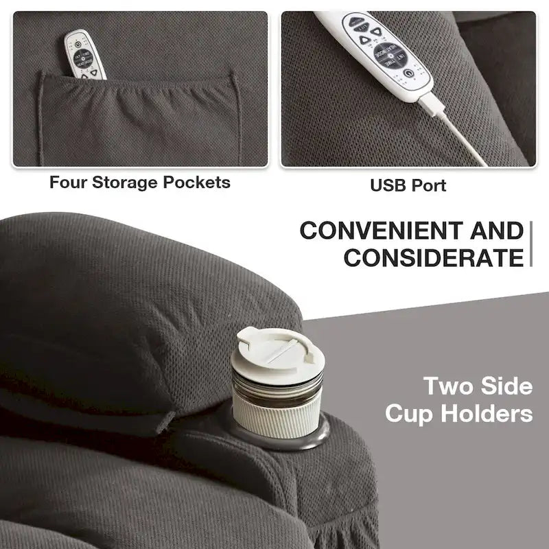 Home Shop Living Room Seating Fabric Electric Power Lift Recliner Chair with Massage and Heat for Elderly with USB Ports,Cup Holders & Side Pocket
