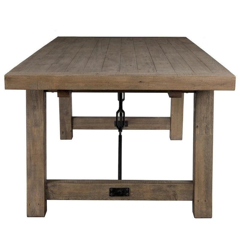 Gather your loved ones around this sturdy and stylish dining table from Carbon Loft Pallero. Crafted from reclaimed pine wood and accented with metal turnbuckles, this table exudes a rustic charm that will elevate your dining space for years to come. With removable leaf extensions, it can comfortably seat up to eight guests. Hand-finished and distressed, this solid wood construction comes with adjustable foot pads to ensure even stability on any floor.