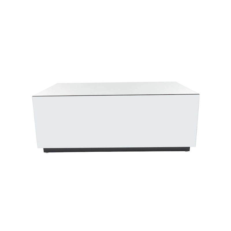 - Rectangle living room furniture is a glam style coffee table, showcasing a striking silver finish with reflective glass panels set against a wide black base