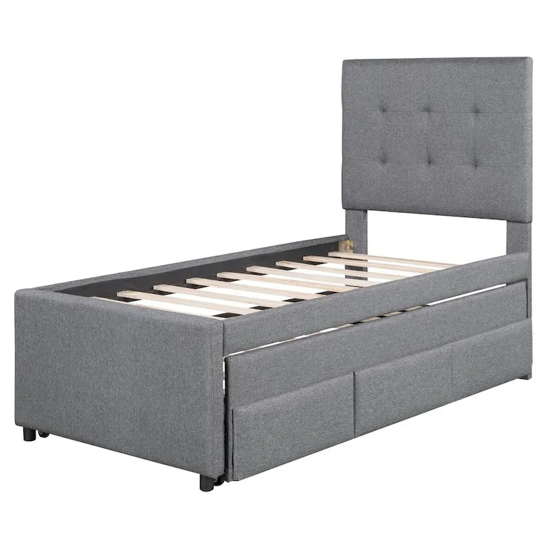 Twin Size Upholstered Platform Bed with Pull-out Twin Size Trundle and 3 Drawers, Gray Twin Size Upholstered Platform Bed with Pull-out Twin Size Trundle and 3 Drawers, Gray