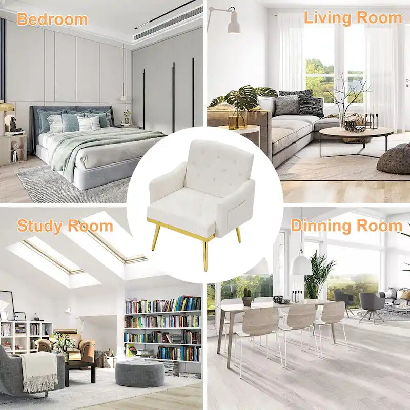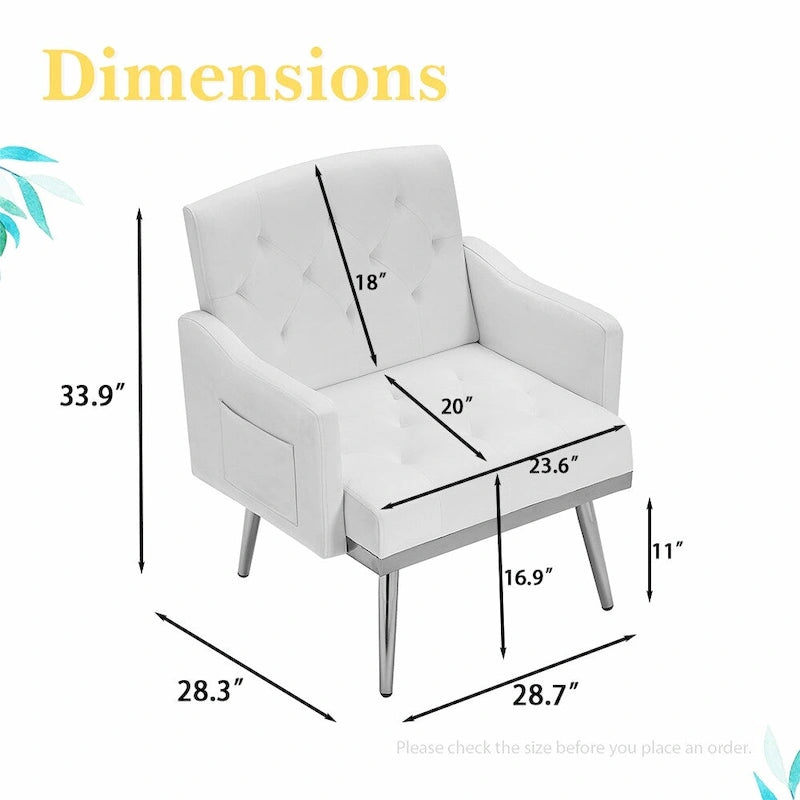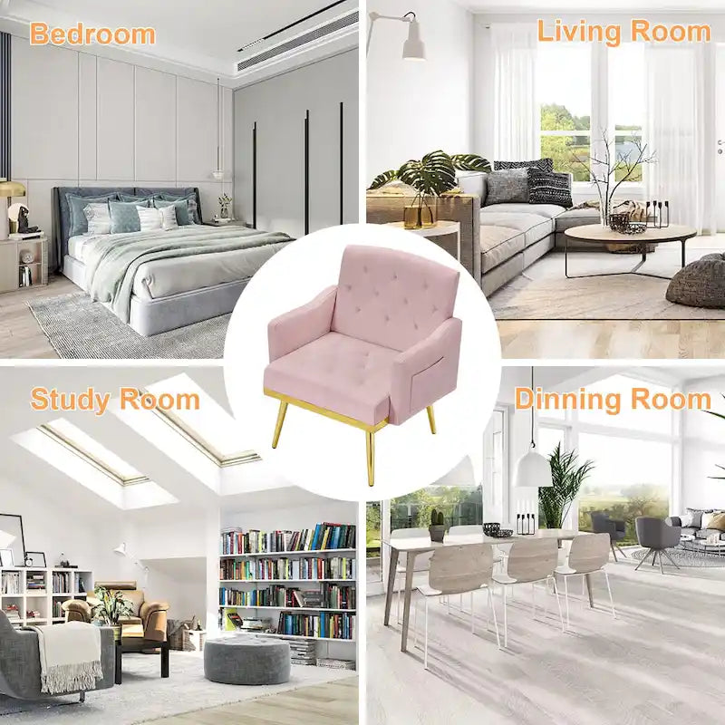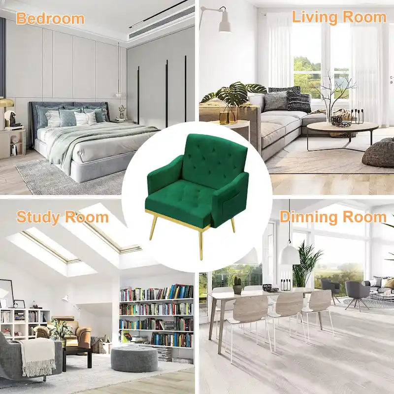 Stylish & Ergonomic Design] - The wide seat space and equal-height armrests are designed to add extra comfort. An ergonomically curved back fits your back and helps to relieve pressure. With an elegant tufted and Lively color design, this accent chair matches a variety of decor styles. The side pocket is convenient to put books, mobile phones, remote controls, etc.